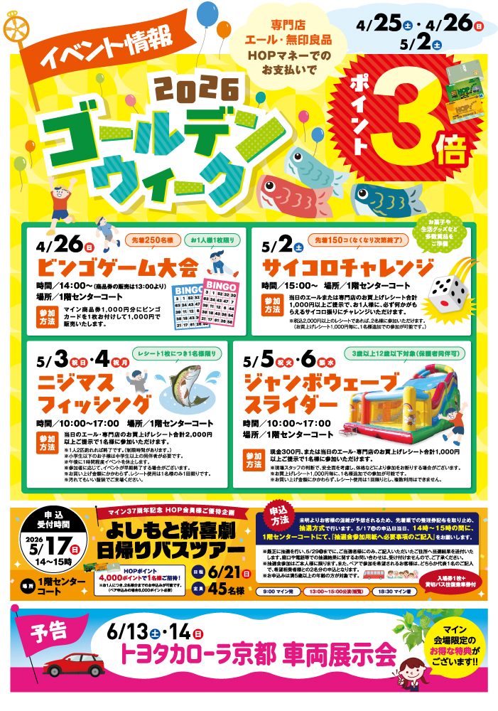 〒627-005 京都府京丹後市峰山町新町1606-1(事務局)TEL 0772-62-5008 (エール)TEL 0772-62-0084営業時間 10:00~20:00(年中無休)※一部店舗では営業時間が異なります。※天災・メンテナンス等で営業時間が変更となる場合は随時お知らせします。